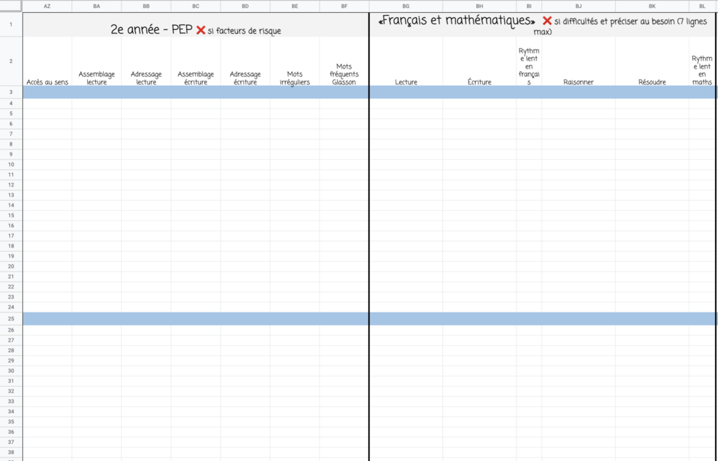 Ces grilles modifiables EXCEL ou SHEETS permettent la compilation d'informations d'élèves.